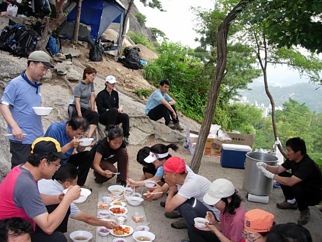 수십인 분에 식사를 산으로 말이다...(암벽반 49기 선배님의 모습)