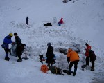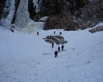 선등자가 출발한다 그러나 등반자의 유례 없는 많은 인원이 토왕폭에 붙어 있다