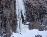 토왕폭 하단의 위용이 반짝이며 스노우 블럭이