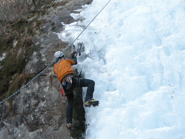 교육을 받는 다시말해 수직에 빙폭을 오르는 동작보다