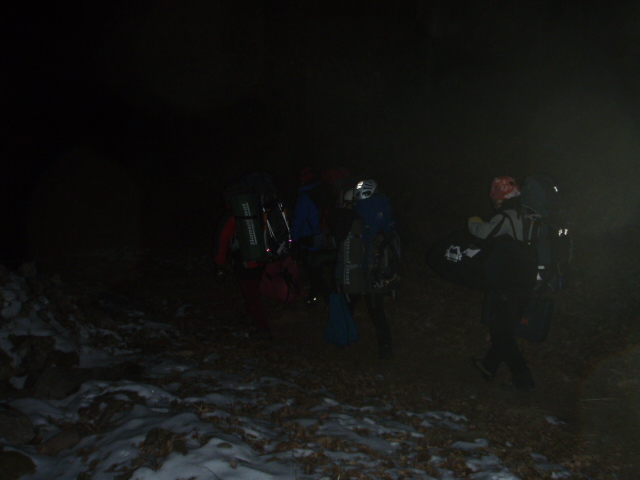 눈과 어우러진 헤드렌턴 불빛