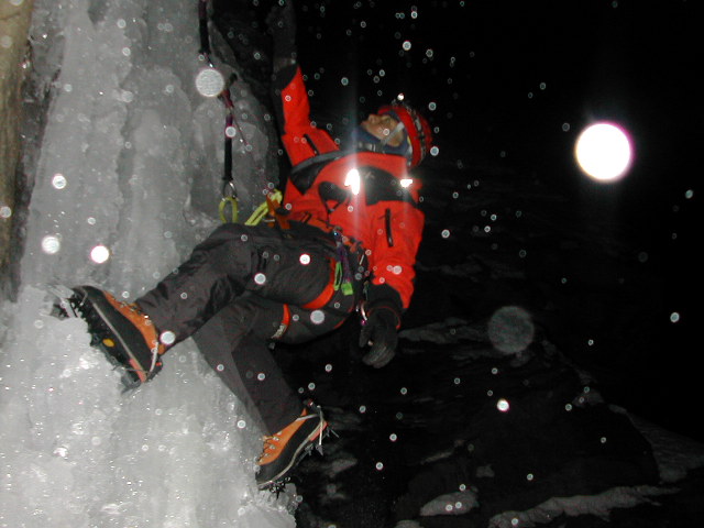 낙수가 떨어지는 가운데 프리 등반하는 학교장 > 갤러리_빙벽반 / 종합완성반