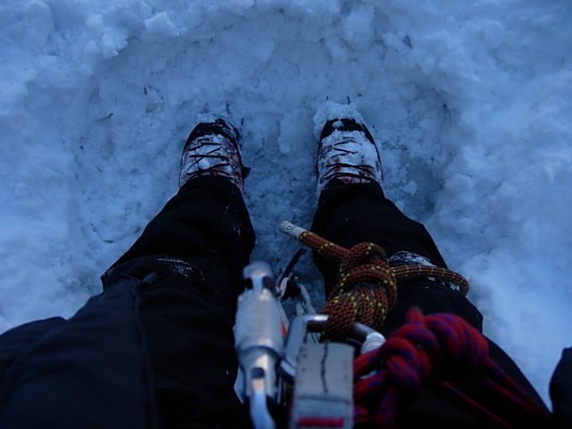 갱기폭 하단은 60m높이로 총 등반 길이가 130m정도됩니다.