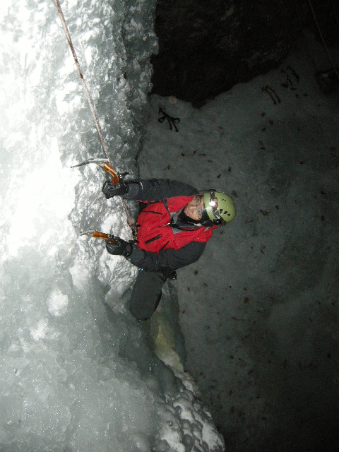 야간 빙벽등반으로
