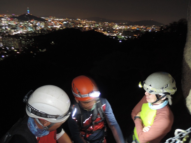 체험학습 교육을 마치고 주변정리와 장비를 정돈하니 어둑어둑한 근 6시가 된다. 등반할 루트 명은 "불후의 명작"이다.