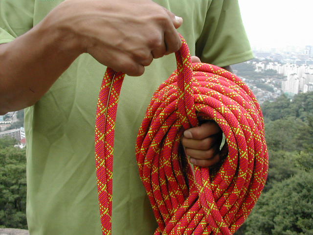 ------[등 매 기]------ 첫 자일을 사릴때 양팔 길이로 2~3번 정도 빼낸 후 사린다 사린 후 끝자일에 남은 길이도 첫자일에 길이와 대략 맞춘다 1