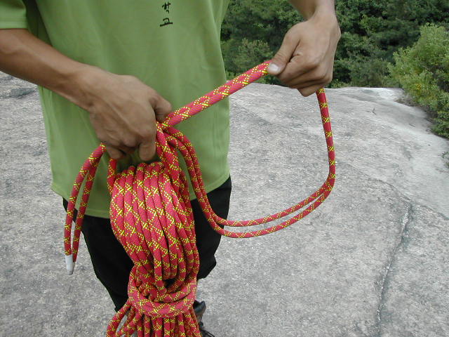 ------[등 매 기]------ 첫 자일을 사릴때 양팔 길이로 2~3번 정도 빼낸 후 사린다 사린 후 끝자일에 남은 길이도 첫자일에 길이와 대략 맞춘다 1