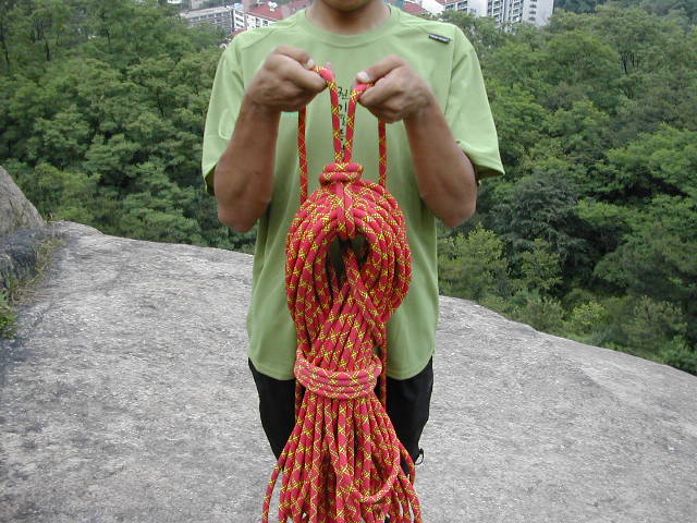 ------[등 매 기]------ 첫 자일을 사릴때 양팔 길이로 2~3번 정도 빼낸 후 사린다 사린 후 끝자일에 남은 길이도 첫자일에 길이와 대략 맞춘다 1