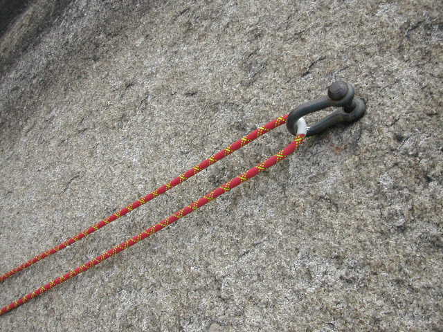 두줄 하강시에는 어느 한줄을 피톤 및 S.M.C링에 집어 넣은 후 다른 한줄과 매듭으로 연결한다