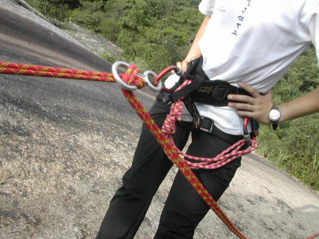 한줄로 하강할 시 작은 구멍으로 설치하여 하강하면 더욱 안전하다 11