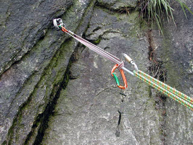 확보줄을 기준으로 할때 후등자가 오른쪽으로 등반한다면 퀵드로우를 확보줄 오른쪽으로 설치한다 3