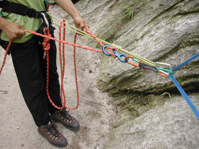 하강기에 자일을 설치하고 4