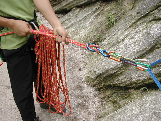 하강기에 자일을 설치하고 4