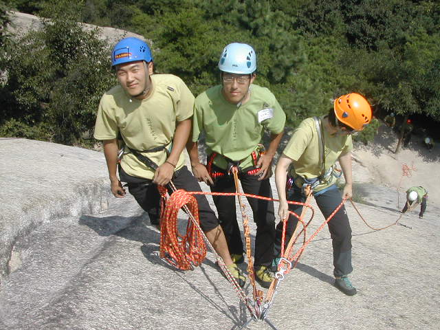 풀고(중간 등반자들은 확보지점에 도착하면 항시 매듭을 풀어주어야 한다) 19