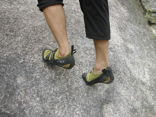 [슬랩등반시 바위흐름 상태에 따라 안 딛기와 바깥 딛기로 발자세를 취한다]