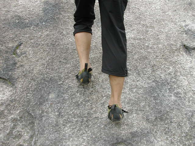 [슬랩등반시 바위흐름 상태에 따라 안 딛기와 바깥 딛기로 발자세를 취한다]