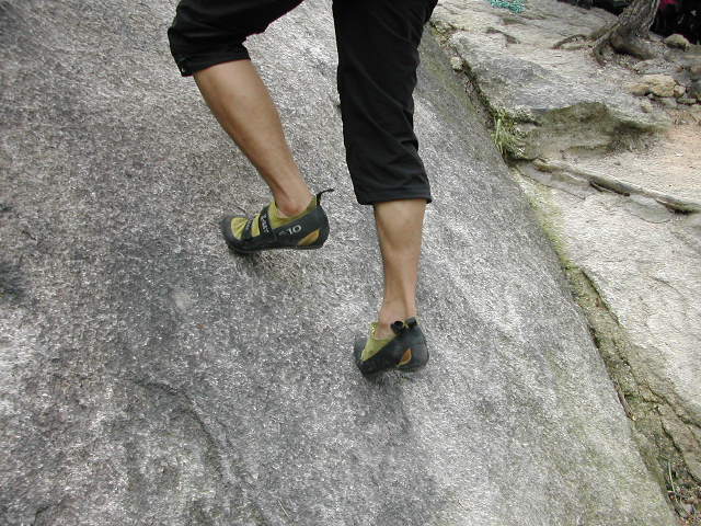 [슬랩등반시 바위흐름 상태에 따라 안 딛기와 바깥 딛기로 발자세를 취한다]