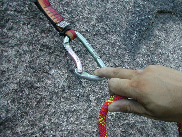[비너에 자일을 통과 시킬때 자일을 클립하는 법]