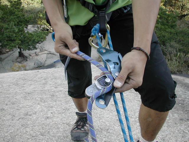 우선 확보지점에 잠금비너를 설치하고 1