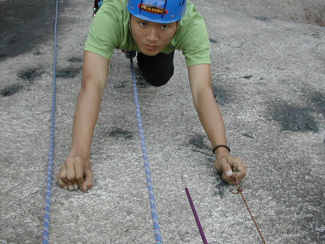 달려있는 코드슬링을 잡아 당긴다 9 > 암벽반_교과사진